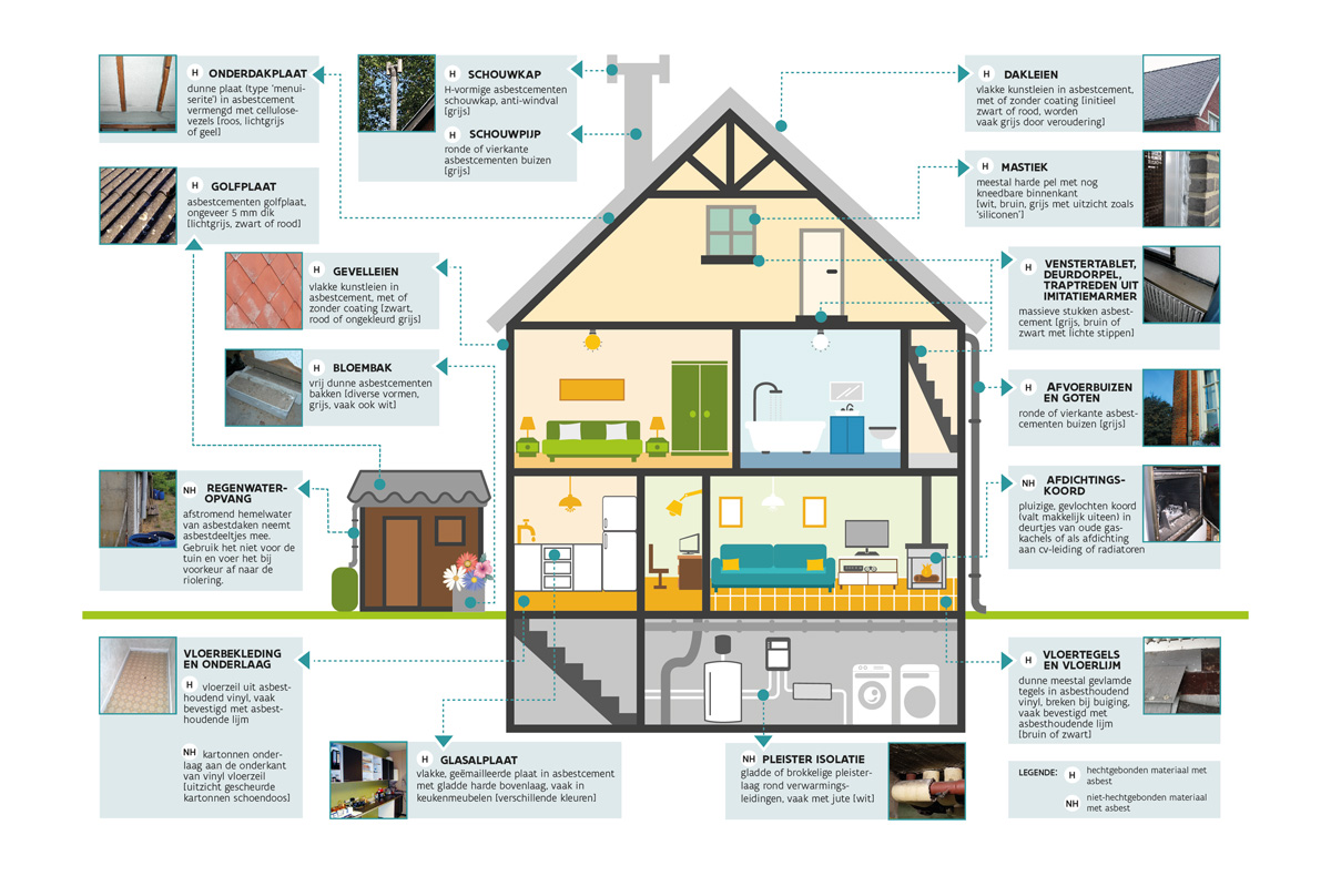 Overzicht van asbesttoepassingen in en rond het huis